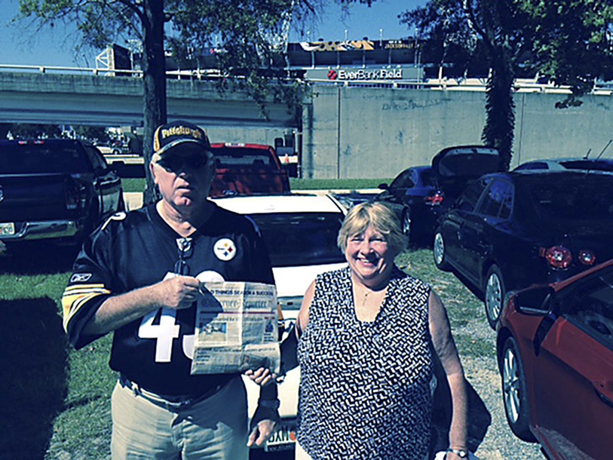 Jack and Sharlie Pavella of Washington took the O-R along to a Pittsburgh Steelers game at EverBank Field in Jacksonville, Fla.
