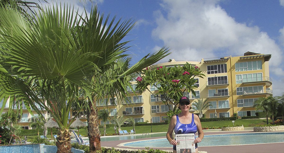 Mary Beth Adams took the O-R along for a week long visit with a friend at the Oceania Resort in Aruba.