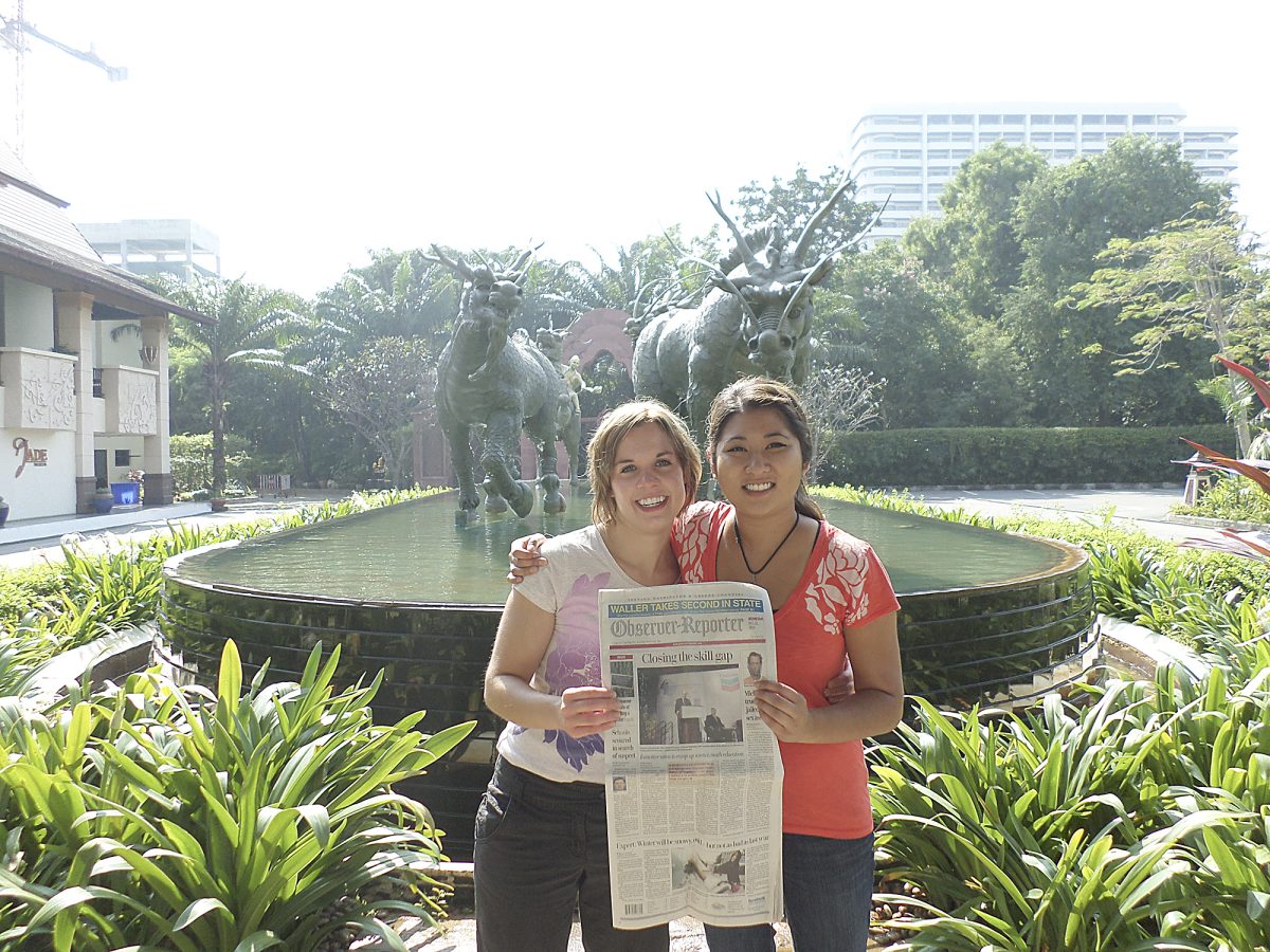 Kylie Otis recently traveled to Bangkok, Thailand, with her best friend Thanh-Thanh Vorasiangsuk to visit her family. They are pictured in front of Garden Cliff Resort and Spa in Pattaya Beach.