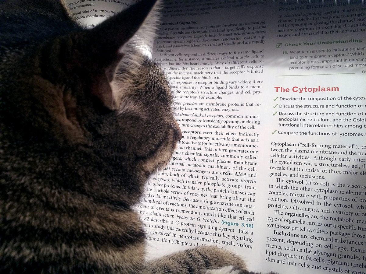 Emily Smith took this photo of her grandmother's cat, Tigger. We're not sure whether he was deep in study of cell biology or just giving the book a "cat scan."