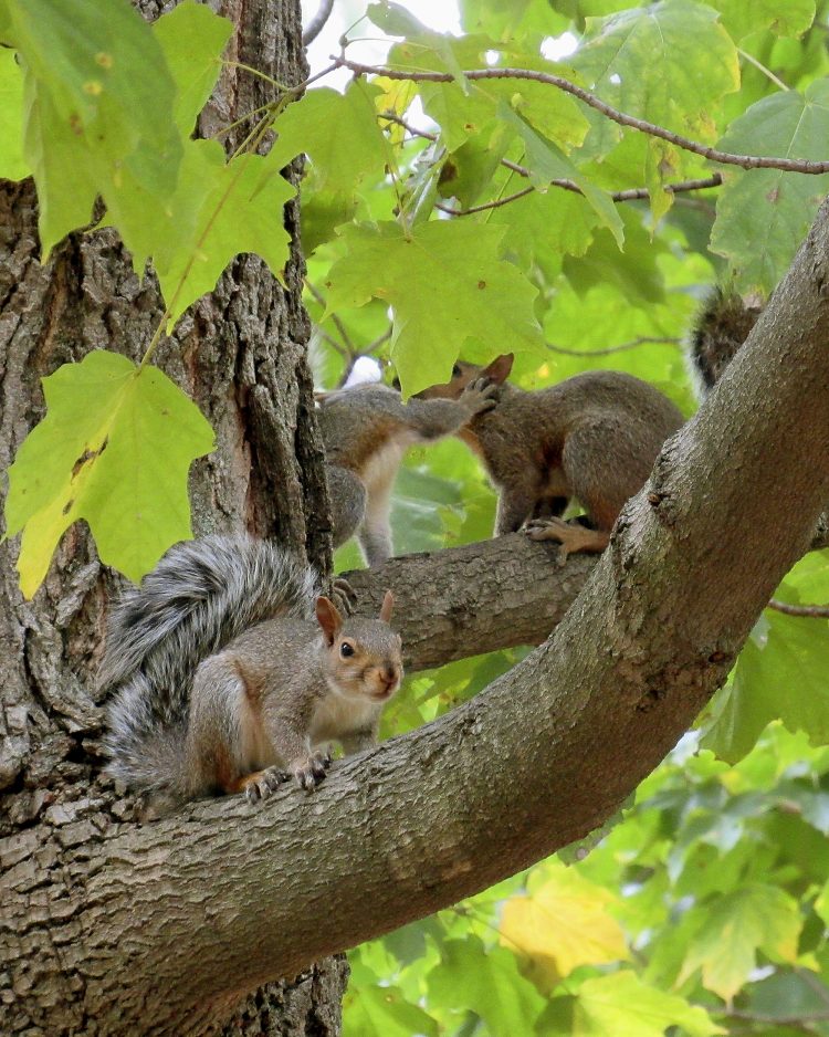 Beth Signorini spotted three young gray squirrels frolicking in a tree while she worked in her yard in Cecil Township.