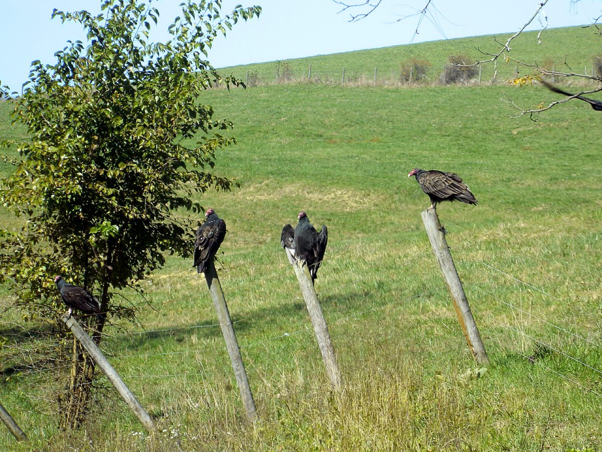Amanda Durbin came upon these turkey vultures perched on fenceposts in Amity.