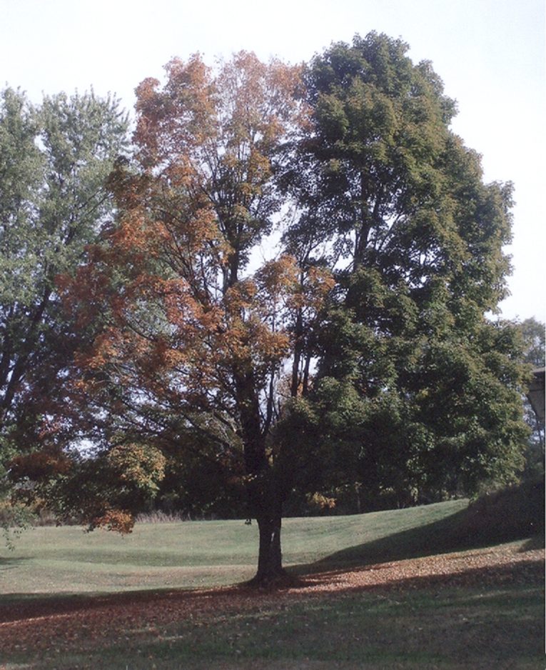 Pat Meloy of Avella has a tree that can't seem to decide what season it is. Half of the maple is green, while the other half has taken on its fall colors.