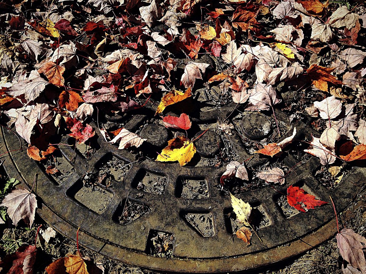 Tina Lasko took this photo of colorful fall leaves obscuring a manhole cover while on vacation in the Laurel Mountains.