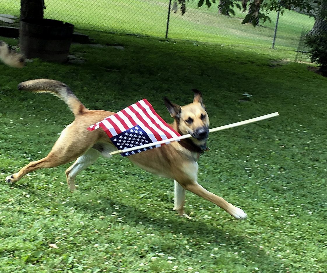 Eileen Laabs of Washington sent us this photo of her dog, Dewey, who is ready to carry the colors on his first Fourth of July.