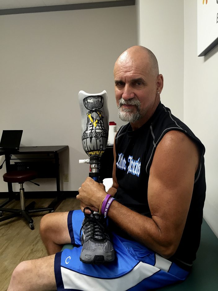 Now THIS guy is a great hockey fan. Roger Russell lost part of a leg in a work accident, and he decided to commemorate the Penguins' recent Stanley Cup championship on his new prosthetic leg. His wife, Bonnie, took the photo.