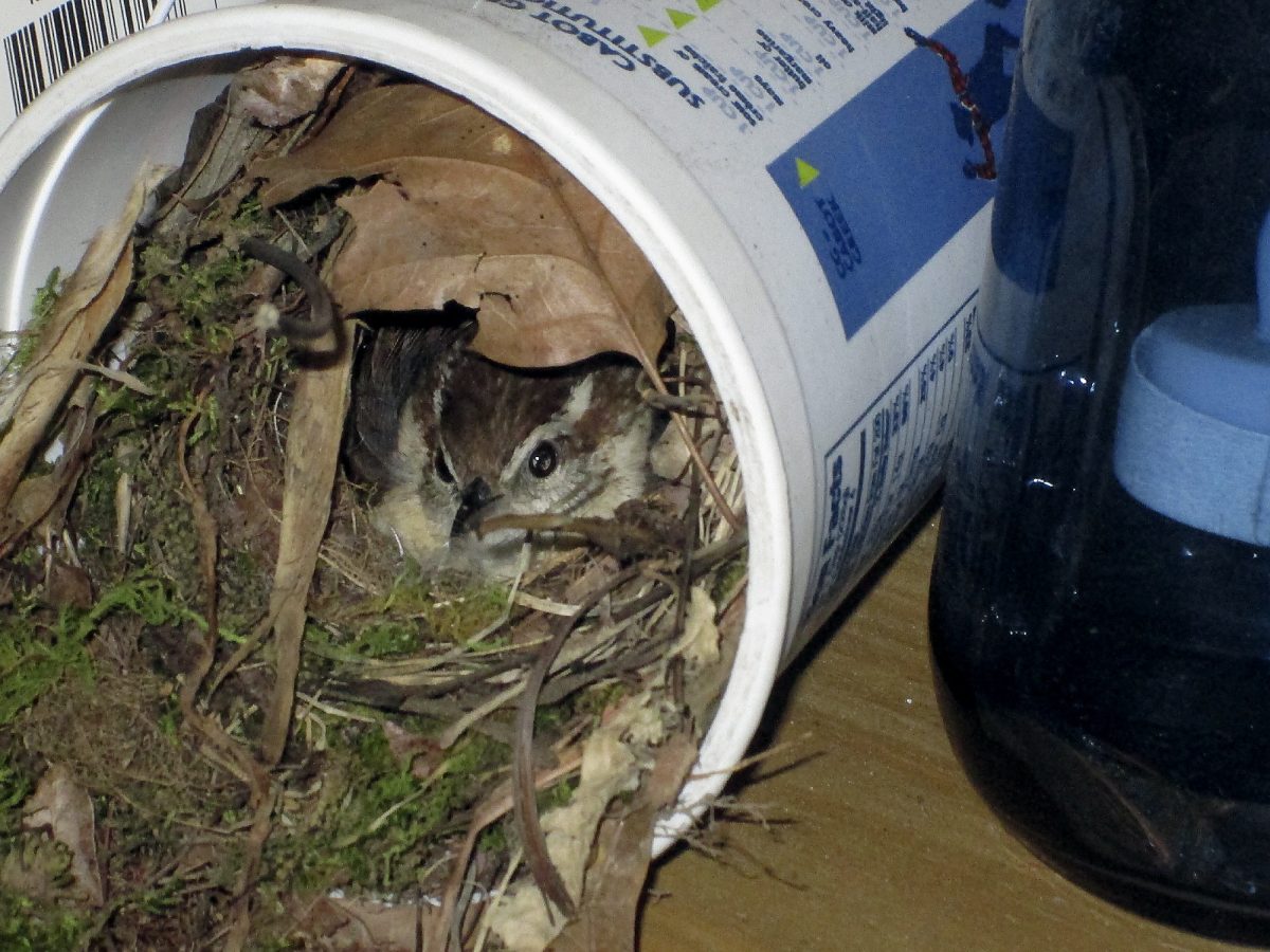 Tom Guckert found this wren had made a nest in a small bucket he uses to scoop potting soil on his back porch. He says there are five eggs inside the next, and he's waiting to see them hatch.