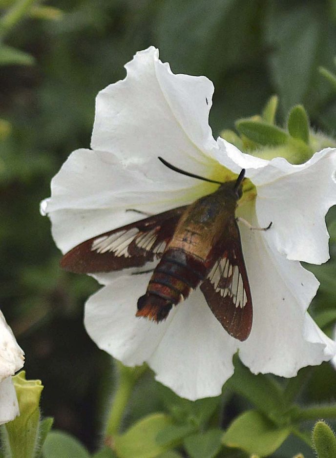 Allan Jack took this photo of a hummingbird moth on one of his petunias. He said the moth flies like a hummingbird and has a very long tongue to get nectar from deep inside flowers.