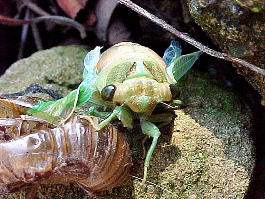 Gary Rubis took this photo of a weird-looking bug emerging from its shell in his backyard in Houston. Gary wasn't sure if it was a very lost, very late cicada or some type of grasshopper.