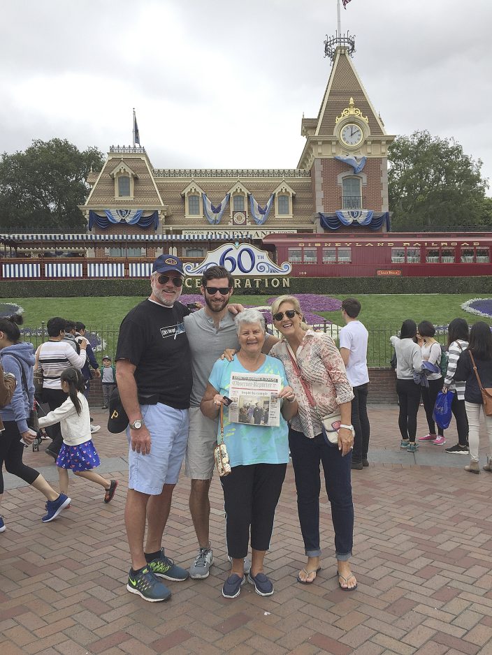 Sherri Mancin of Washington spent a week visiting her niece and family in Chino, Calif. She is pictured at Disneyland with Scott, Casey and Kelly Leslie.