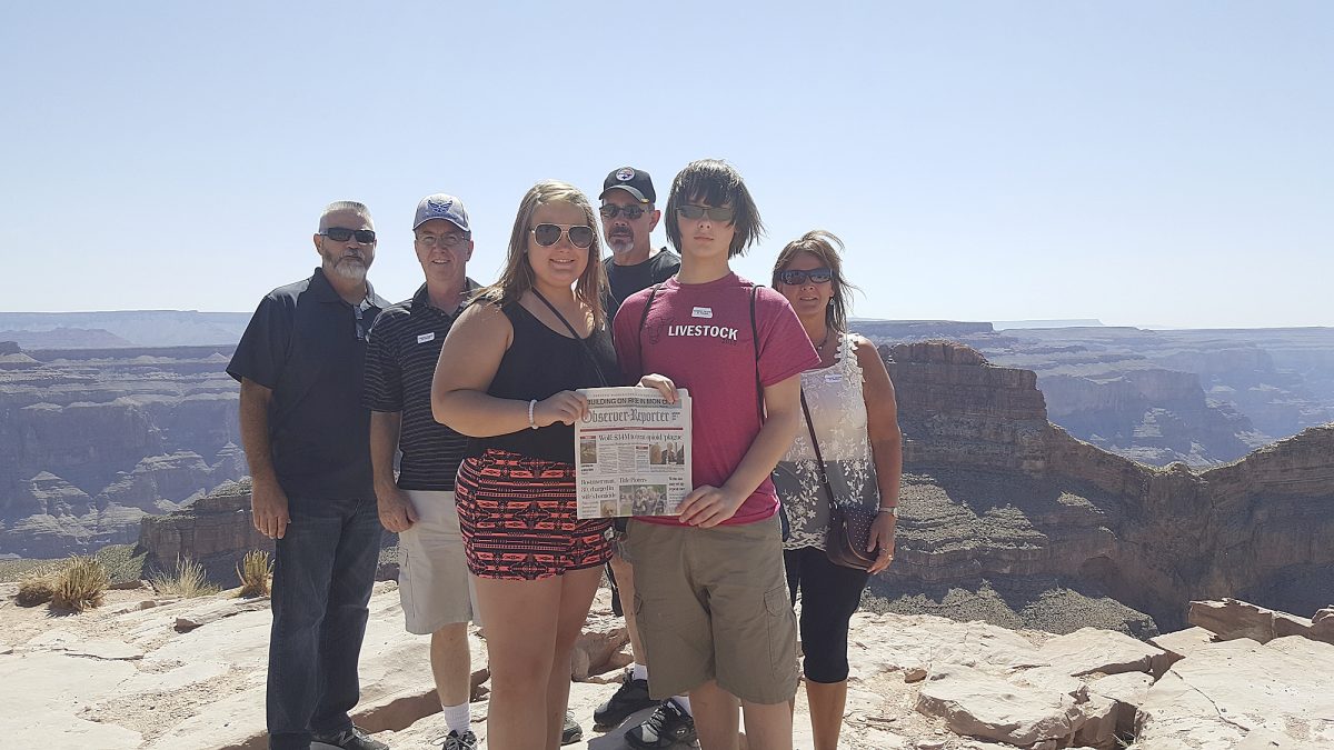 Taylor and Calab Crouse of Taylorstown and Ray and Kathy Swihart of Washington took the O-R along to the Grand Canyon. They are pictured at Eagle Point along the West rim with Randy Young of Highland, Calif., and Dave Lane of Las Vegas, Nev.