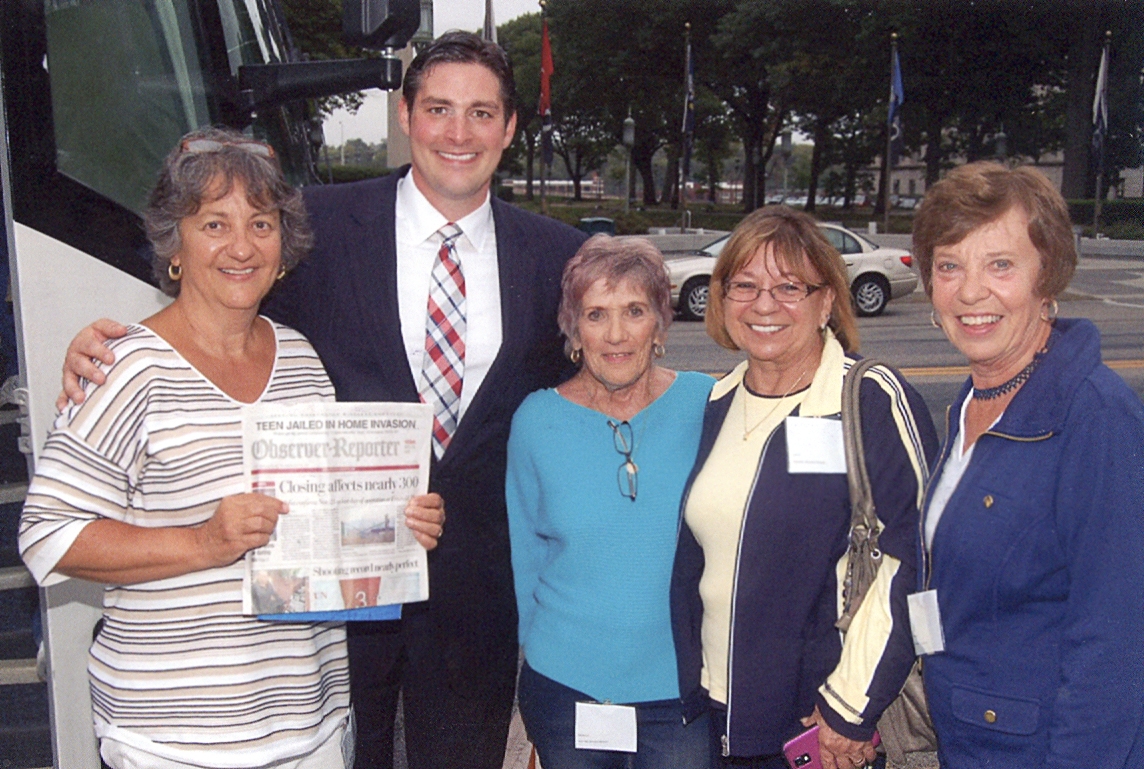 State Representative Brandon Neuman recently sponsored a bus trip to the state capital. Pictured are Barbara Dewitt of Canonsburg, Neuman, Mary Elizabeth Boroch, Jean Cholak and Donna DiNardo, all of Houston.