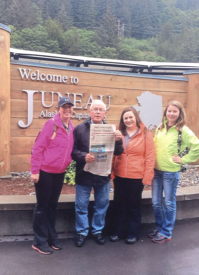 Ron Throckmorton and his three granddaughters took the O-R along on a nine day Alaskan cruise in August. They started in Anchorage and ended in Vancouver, Canada. Pictured are, from left, Kayla Throckmorton, Ron Throckmorton, Danielle Benson and Kara Throckmorton.
