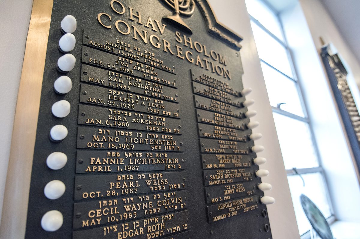 A memorial plaque inside Temple Beth Am.