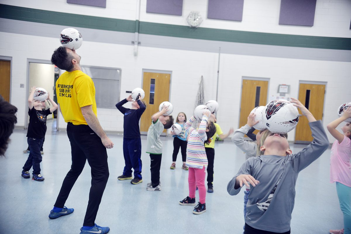 Provided at no cost to the schools, Riverhounds personnel teach students about skills associated with the sport, including balance and coordination, body control and footwork with the soccer ball. Each student gets his or her own ball for the duration of gym class.