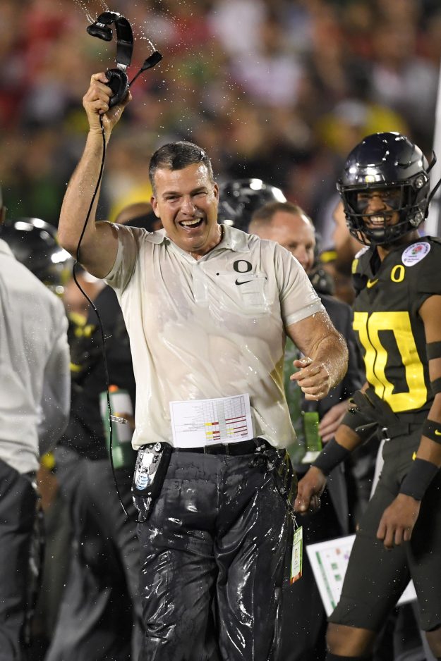 Three years after coach Mark Helfrich was fired when the Ducks went 4-8 in Herbert’s freshman season, Oregon held on to cap a Pac-12 championship campaign with its 12th win in 13 games and the fourth Rose Bowl victory in school history.