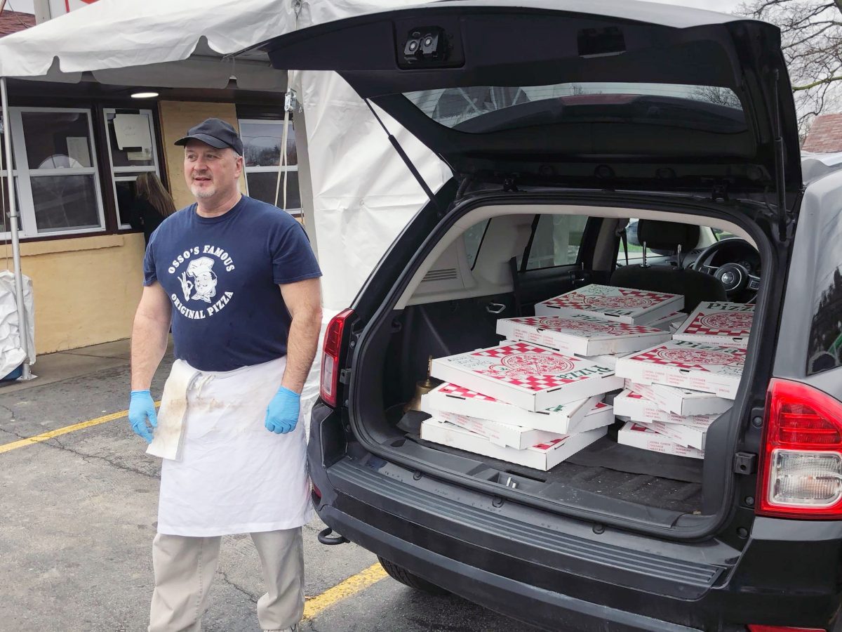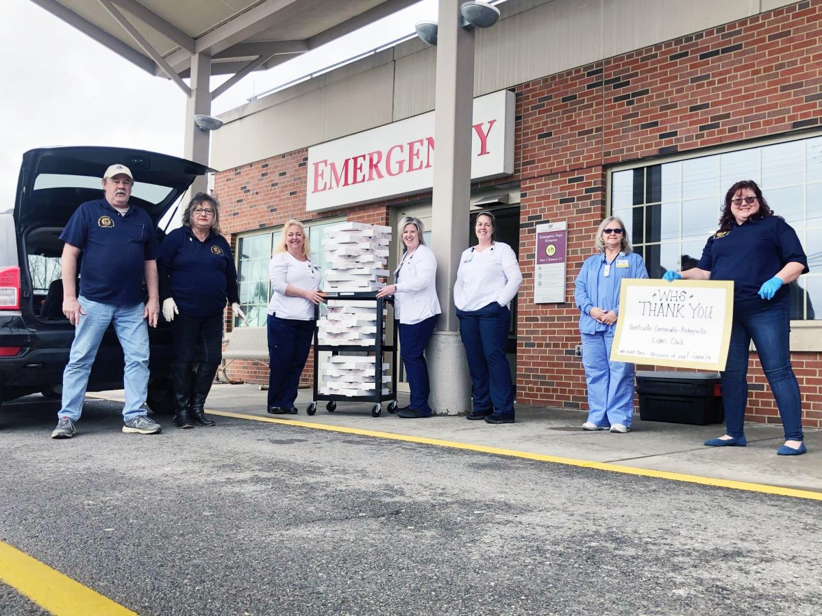 Washington Hospital accepts a delivery Wednesday of Osso’s Pizza donated by Beallsville Centerville Richeyville Lions Club.