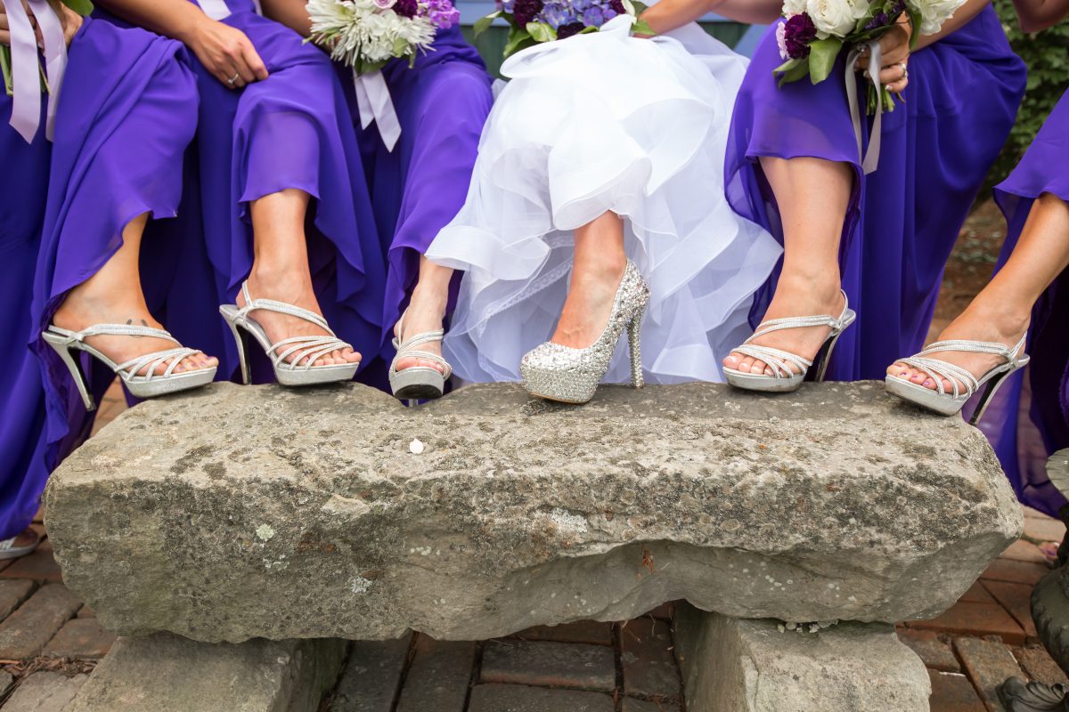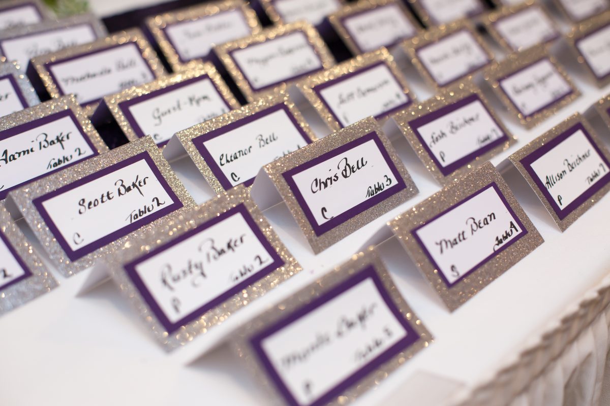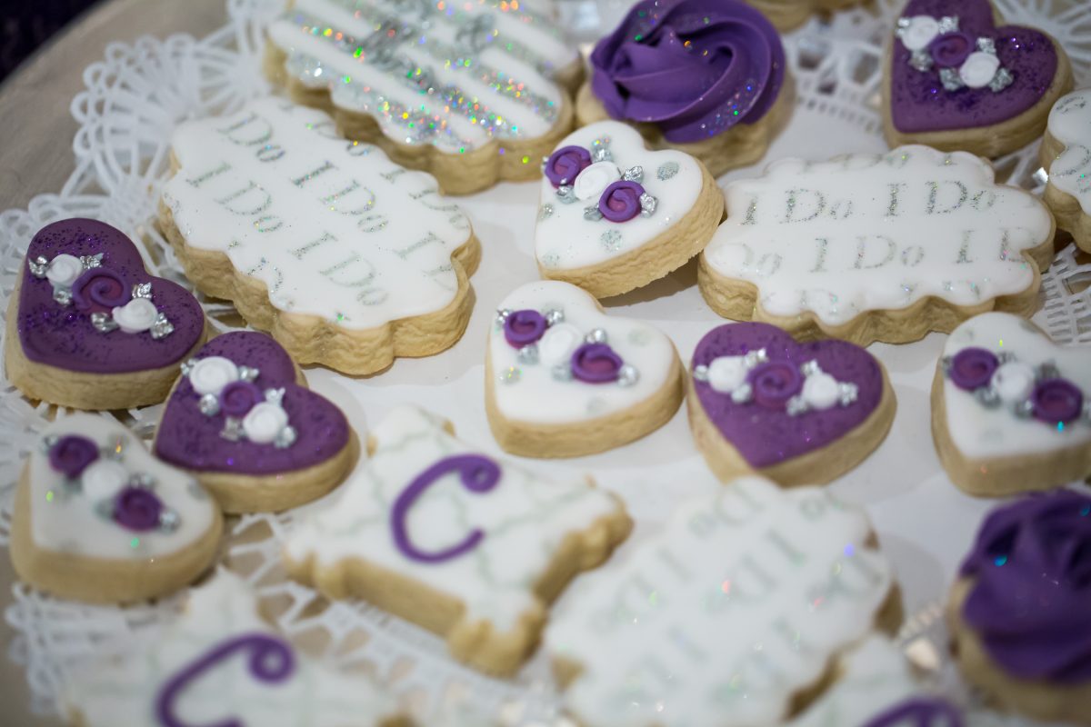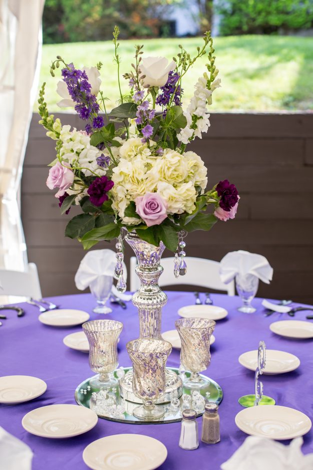 Next, it was time to celebrate on The Tara’s tented patio. The theme? “Purple bling!” Everything shimmered, from the three-tier bedazzled cake and glittery cookies, to the crystal-adorned centerpieces and chandeliers lighting the evening. Not to mention Nicole’s high heels, completely covered in rhinestones!