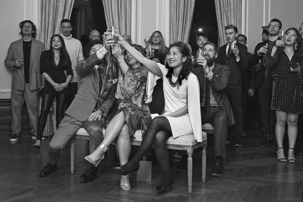The professional photos of the event are all in black and white, because the couple feels that black and white images are very timeless and cinematic. “We watched the movie “Roma” and we saw stills from the film. We loved how cinematic it was, and that’s what we wanted to accomplish with our photos,” Jasper says.