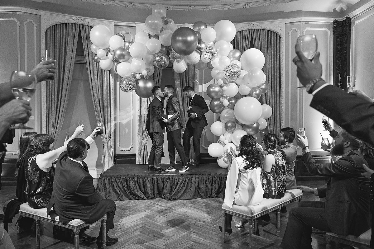 Christopher hails from Houston, Pa., and Jasper from Corona, Calif. They now reside in New York City, and took advantage of the Thanksgiving holiday to bring their families together to make it official. Both the ceremony and reception took place at the Ukrainian Institute of America’s Fletcher-Sinclair Mansion, where Jasper is the director of operations.